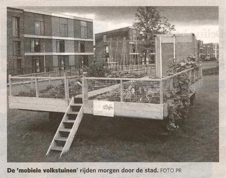 Vanaf juli staan er in de Haagse wijken Ypenburg en Transvaal 'mobiele volkstuinen'; tuintjes op houten platformen met wielen eronder. Bewoners van beide wijken hebben de moestuinen afgelopen weken onderhouden en inmiddels zijn ware groene oases ontstaan.